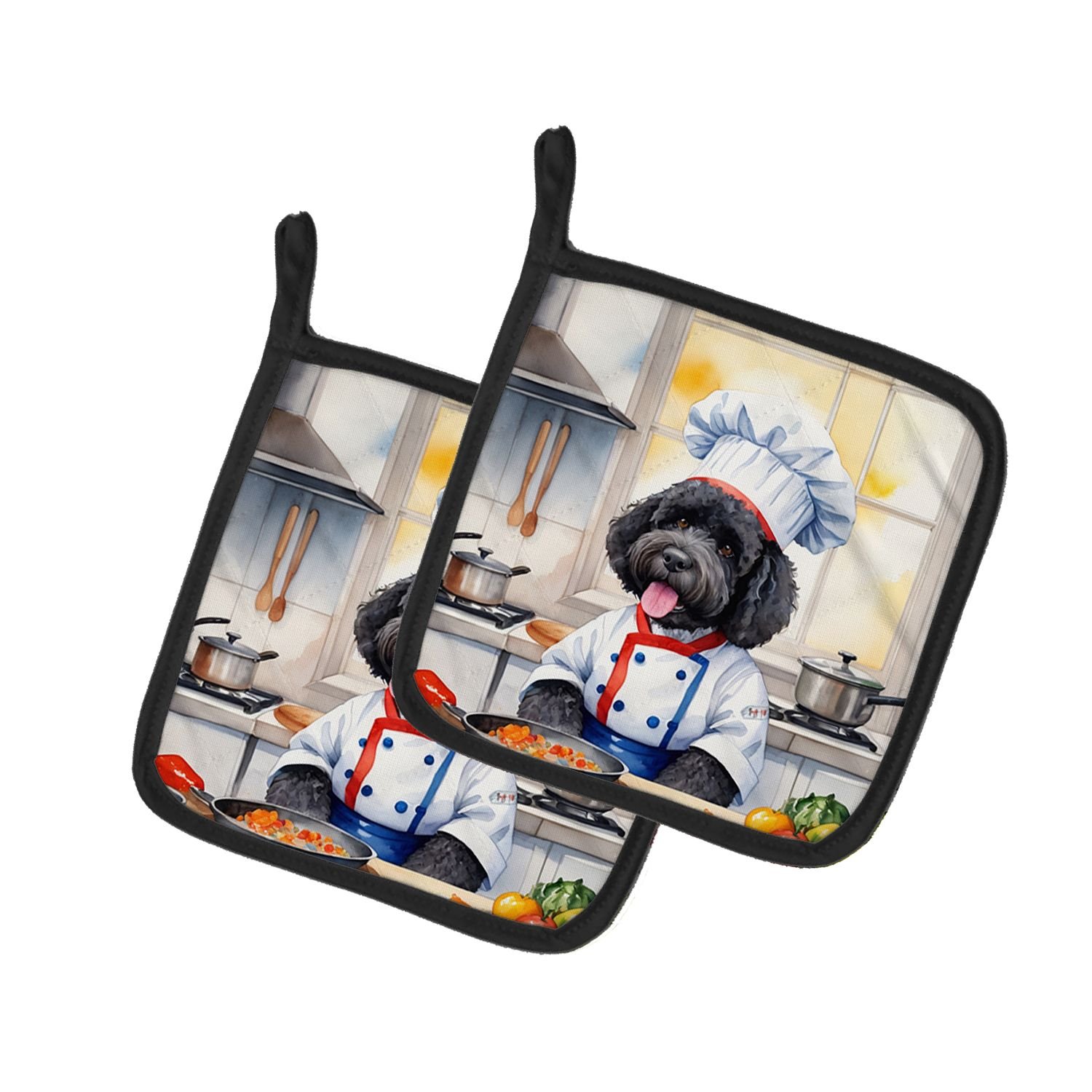Home > Portuguese Water Dog The Chef Pair of Pot Holders Kitchen Heat Resistant Pot Holders Sets Oven Hot Pads for Cooking Baking BBQ, 7 1/2 x 7 1/2
